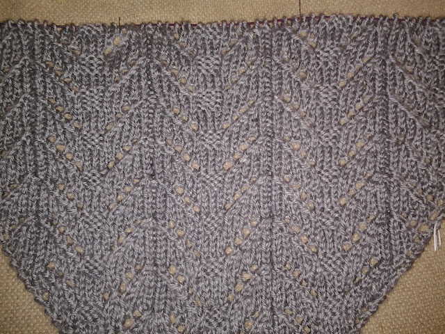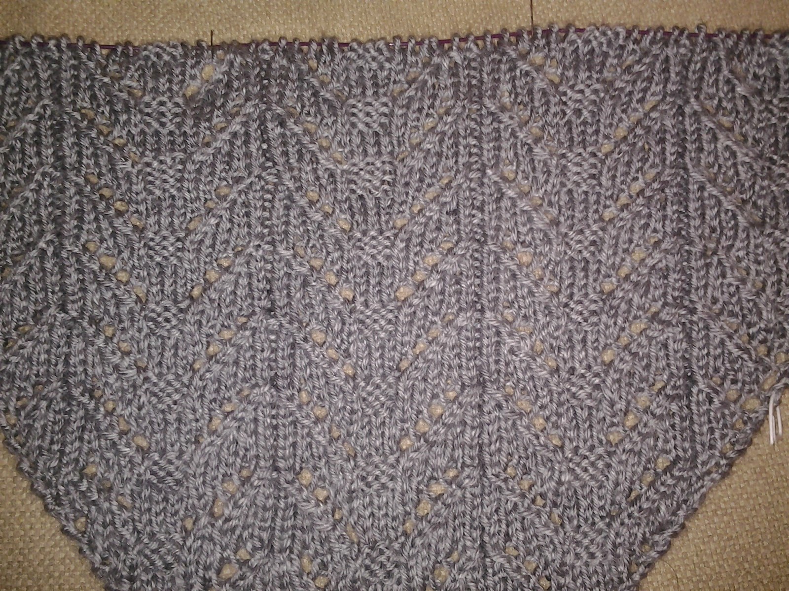 boa tarde,naquinta feirz depois do trabalho vi um xaile lindissimoe reparo que num grupo de tricot o iriam fazer todos juntos,nem hesitei,decidi que seria mesmo comecado no dia feriado,se pensei assim fiz,ja estou a terminar o 3 grafico,sendo assim terei de esperar ate quinta feira para o poder adiantar,pois a 2 posta so chegara nesse dia... ate la sera para ressacar dtricot e adiantar uma toalha de mesa aos quadrados...